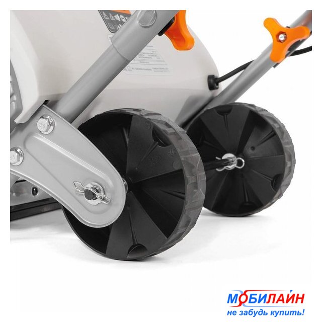 ручной, аккумуляторный двигатель, захват 40x20 см, выброс на 6 м