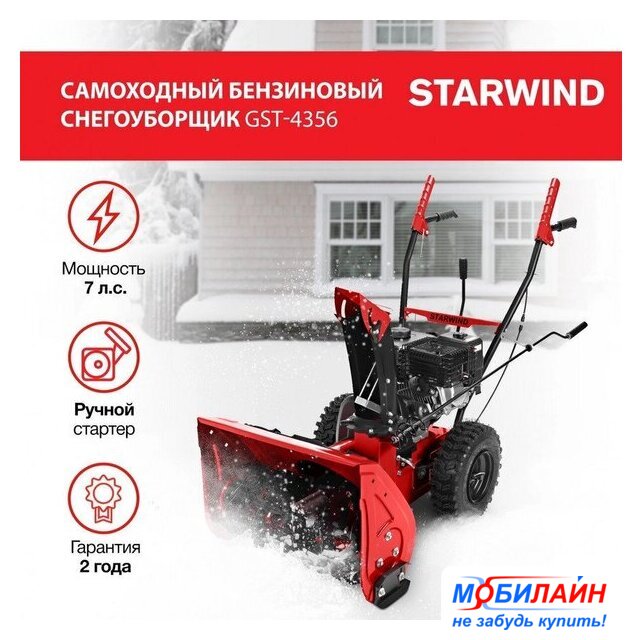 самоходный, бензиновый двигатель 4500 Вт 7 л.с., захват 56x43 см, выброс на 15 м