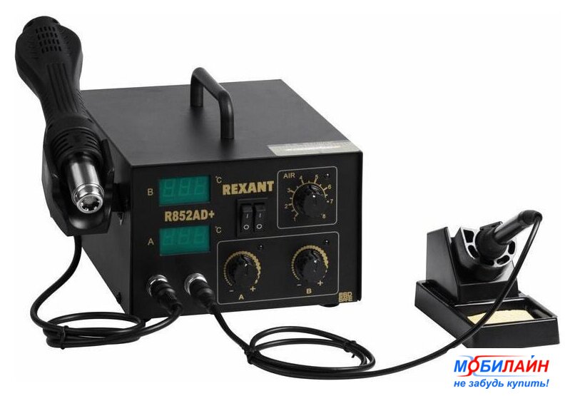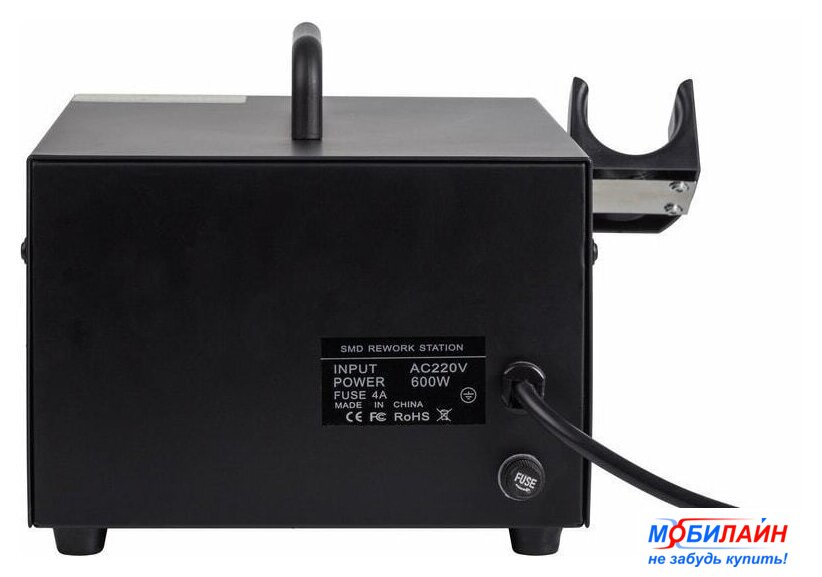 Комплектация | основной блок, термофен, паяльник, держатель паяльника, держатель термофена, губка для очистки жала паяльника (в ложементе), 3 насадки для термофена разного размера. |