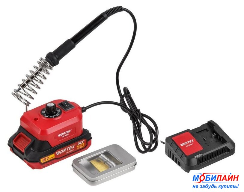 Комплектация | - Аккумуляторный паяльник - 1 шт;- Руководство по эксплуатации - 1 шт;- Припой - 5 г;- Металлический контейнер - 1 шт;- Губка - 1 шт;- Аккумулятор WORTEX CBL 1820-1 - 1 шт;- Зарядное устройство WORTEX FC 1515-1 - 1 шт. |