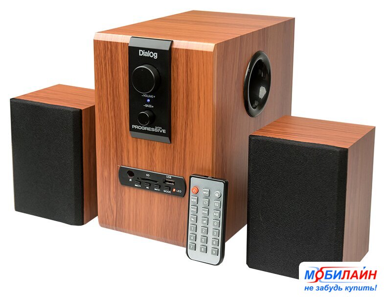 Комплект поставки | сабвуфер, два сателлита с кабелем для подключения, кабель для подключения к источнику сигнала 2RCA-M->3.5 мм "стерео джек" с позолоченными контактами, беспроводной пульт ДУ, руководство пользователя, гарантийный талон, упаковка |