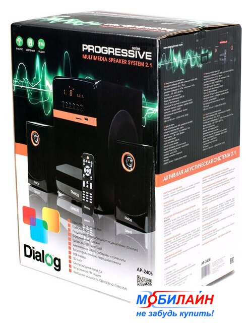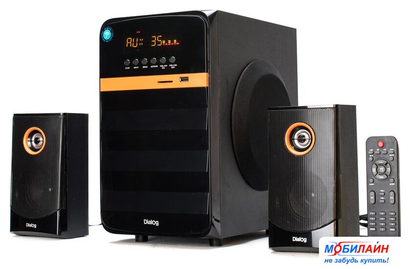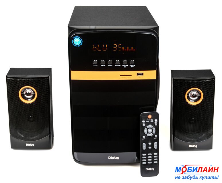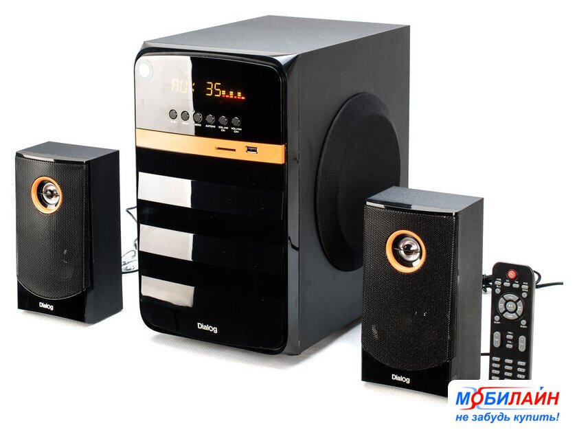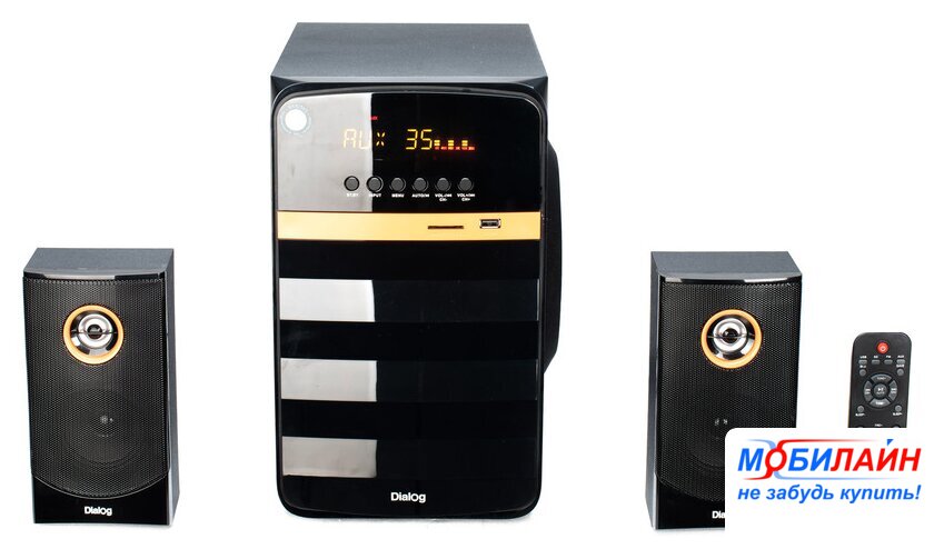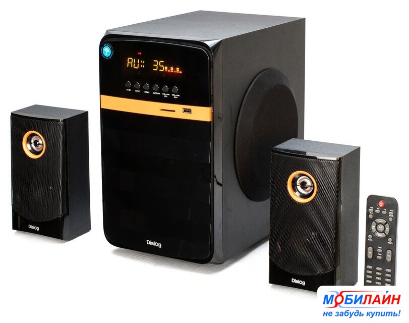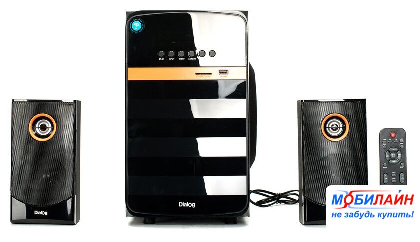 Комплект поставки | сабвуфер, два сателлита с кабелем для подключения, кабель для подключения к источнику сигнала 2RCA-M->3.5 мм "стерео джек", беспроводной пульт ДУ, батарейки ААА для пульта ДУ - 2 шт, антенный кабель, руководство пользователя, гарантийный тало |