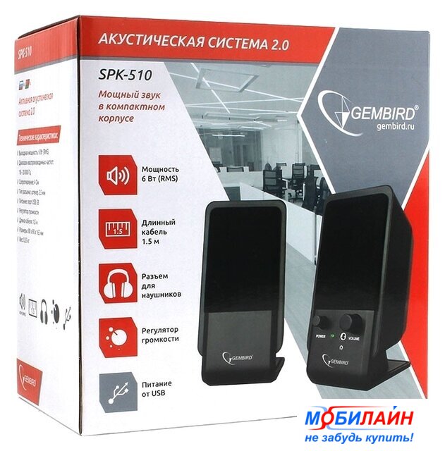 2.0, суммарная мощность 6 Вт, частота 18-20000 Гц, выход на наушники