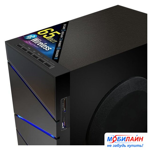 Комплект поставки | Сабвуфер, сателлиты-2шт., аудиокабель, пульт ДУ, руководство, гарантийный талон |