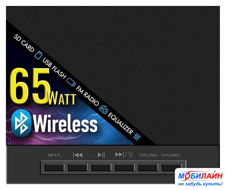 2.1, 40 Вт, подключение по USB, пульт, радио, BT, карты памяти