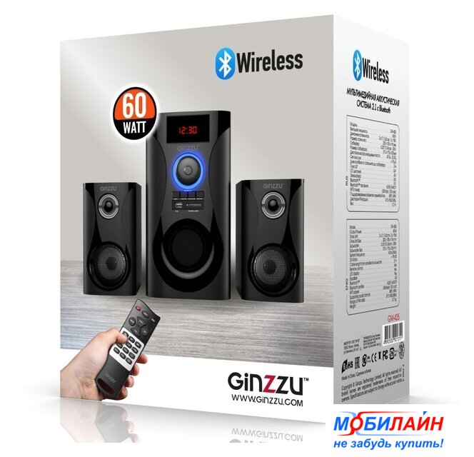 Комплект поставки | Сабвуфер, сателлиты-2, аудиокабель, пульт ДУ, руководство, гарантийный талон |
