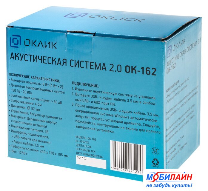 Комплект поставки | акустическая система OK-162, руководство пользователя. |