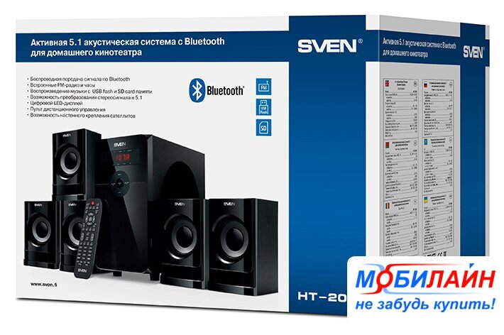 2.1, суммарная мощность 70 Вт, частота 150-20000 Гц, пульт ДУ, FM-радио, Bluetooth