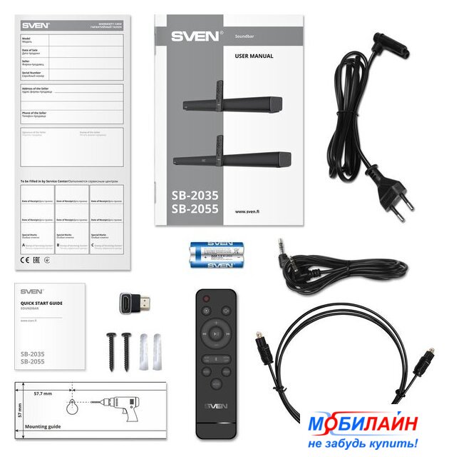 Комплект поставки | - пульт ДУ- батарейки для пульта ДУ (2xAAA)- оптический аудиокабель- аудиокабель 3.5 мм- адаптер HDMI угловой - адаптер питания- набор для настенного крепежа- документация |