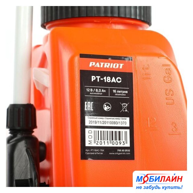 Комплектация | - Опрыскиватель;- Аккумулятор;- Зарядное устройство;- Распылительная штанга со шлангом и рукояткой;- Фильтр;- Транспортировочная тележка;- Ранцевый ремень;- Уплотнительное кольцо - 3 шт;- Сменные распылительные насадки - 3 шт. |