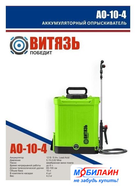 аккумуляторный, 4 л, расход 0.2 л/мин, 2.8 бар, корпус: пластик, штанга: пластик, белый, 1.1 кг