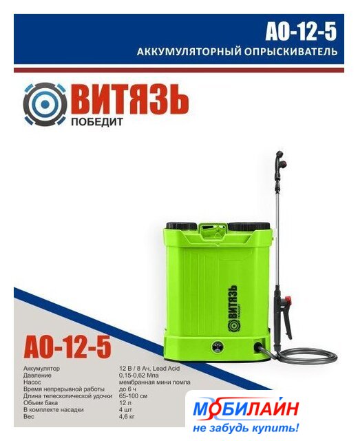 аккумуляторный, 12 л, расход 3.1 л/мин, 3.5 бар, корпус: пластик, телескопическая штанга