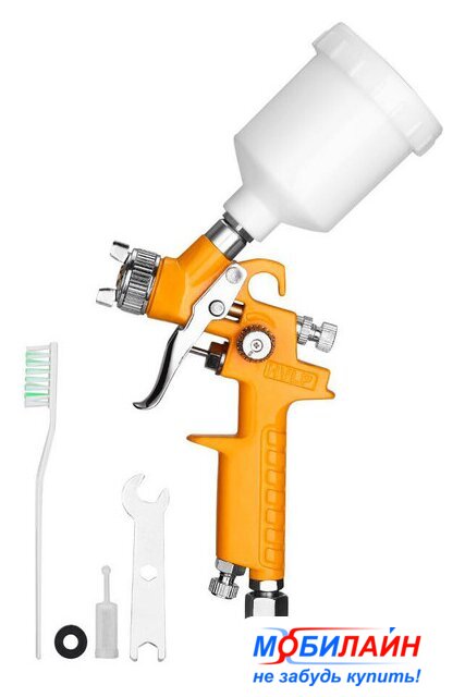 | Комплектация | - Краскораспылитель - 1 шт.- Бачок - 1 шт.- Быстросъемный штуцер - 1 шт.- Уплотнительное кольцо - 1 шт.- Гаечный ключ - 1 шт.- Щетка - 1 шт.- Фильтр - 1 шт.- Руководство по эксплуатации |