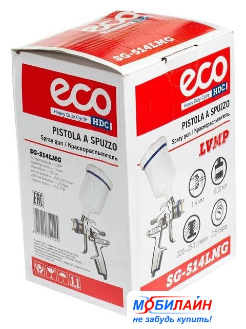 HP, расход воздуха: 160 л/мин, 3.5 бар, сопло: 1.8 мм/2.0 мм, бачок: 1000 мл, 1100 г