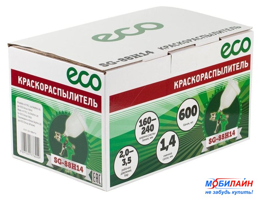 HVLP, расход воздуха: 180 л/мин, 3.5 бар, сопло: 1.4 мм, бачок: 600 мл, 900 г
