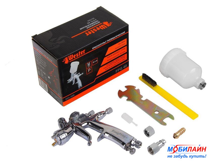| Комплектация | - Краскораспылитель- Инструкция- Ключ гаечный универсальный- Щётка плоская- Фильтр сетчатый- Адаптер быстросъёмный ЕВРО с внутренней резьбой- Штуцер с внутренней резьбой- Упаковка |