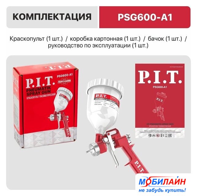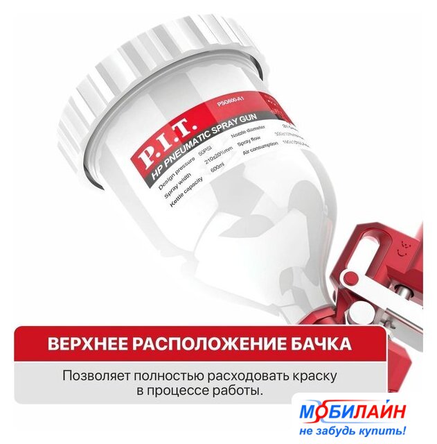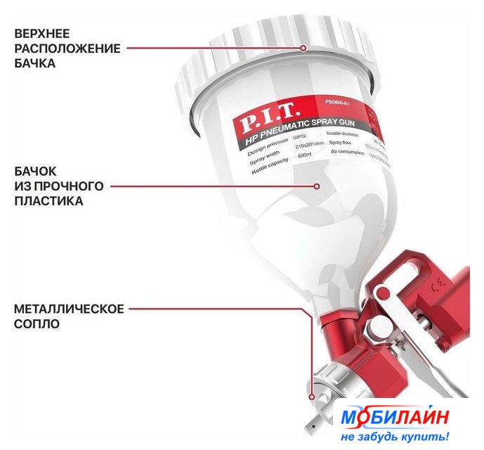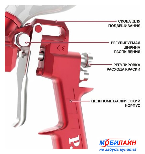 HP, расход воздуха: 200 л/мин, 3 бар, сопло: 1.2 мм/1.5 мм/1.8 мм, бачок: 1000 мл, 570 г