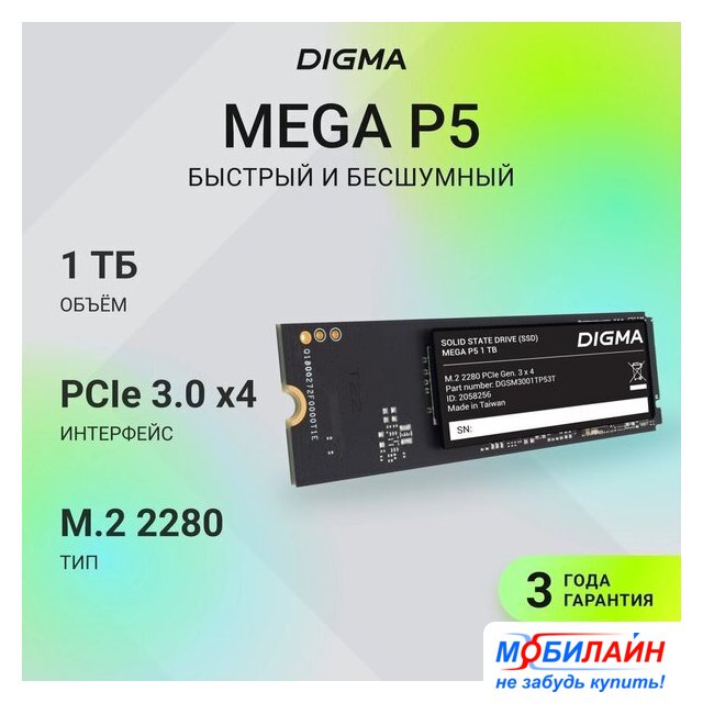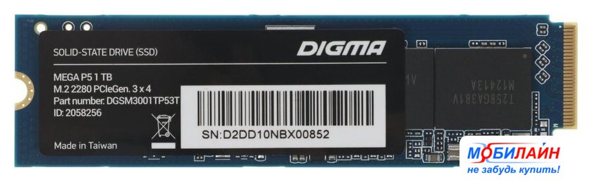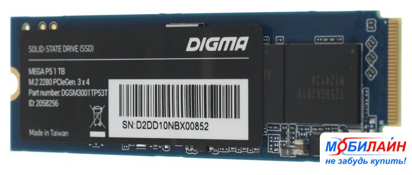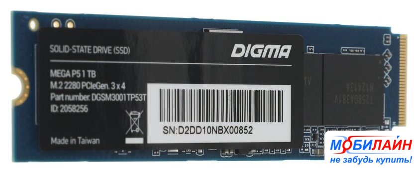 1 ТБ, M.2, PCI Express 3.0 x4 (NVMe 1.3), микросхемы 3D TLC NAND, последовательный доступ: 2400/1900 MBps, случайный доступ: 76400/96200 IOps