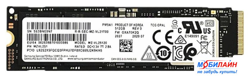 512 ГБ, M.2 2280, PCI Express 4.0 x4, микросхемы 3D TLC NAND, последовательный доступ: 3600/3000 МБайт/с, случайный доступ: 410000/600000 IOps, SLC-кэш