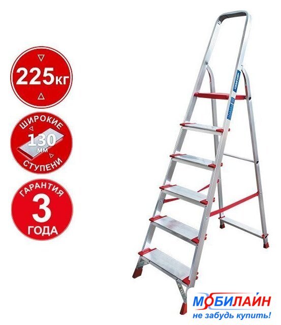 лестница-стремянка, 5 ступеней, алюминий, верхняя площадка
