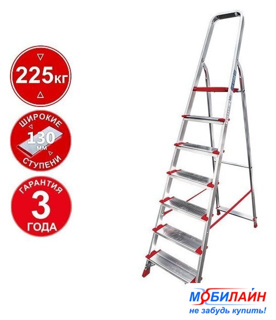 лестница-стремянка, 7 ступеней, алюминий, верхняя площадка