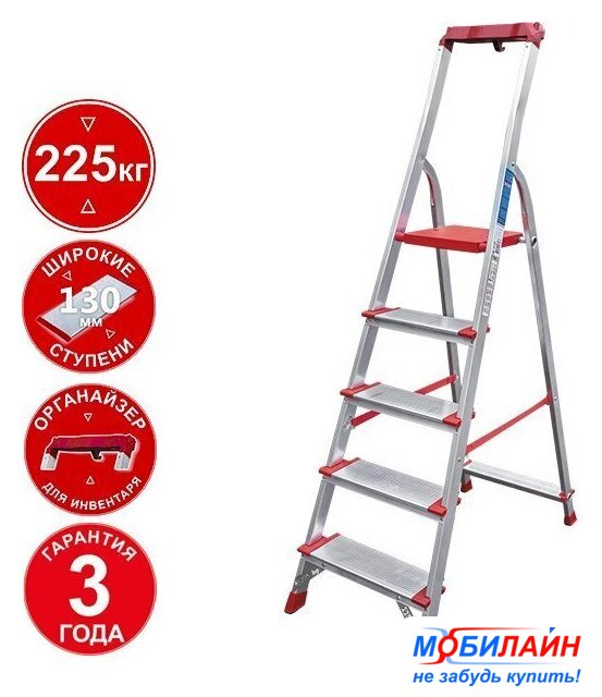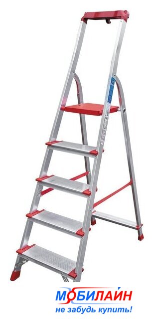 лестница-стремянка, 5 ступеней, алюминий, верхняя площадка