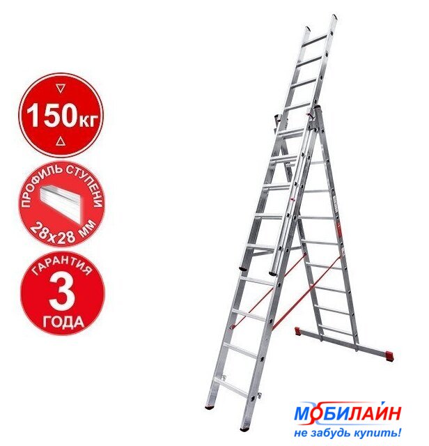 лестница-стремянка, 10 ступеней, алюминий, верхняя площадка