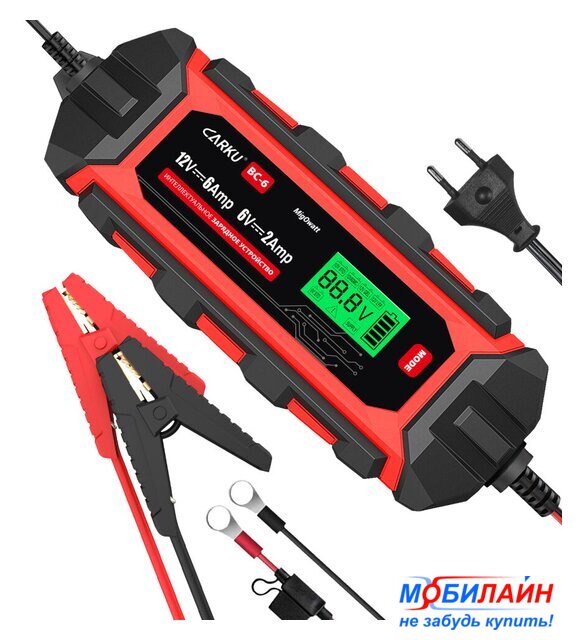 | Комплект поставки | – зарядное устройство CARKU BC-6,– кабель питания с вилкой,– кабель с зажимами для подключения к аккумулятору,– инструкция по эксплуатации (русский язык),– сумка для переноски и хранения комплекта. |