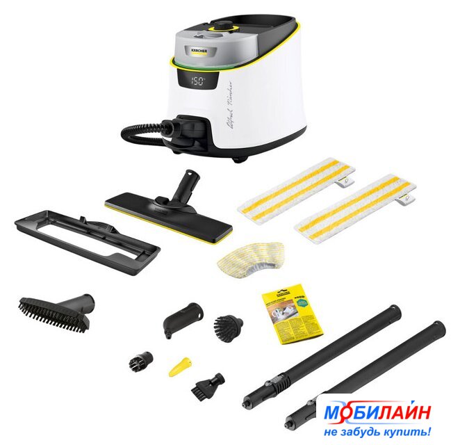 Дополнительные насадки и приспособления | - Универсальная салфетка для пола EasyFix: 2 шт.- Обтяжка из микроволокна для ручной насадки: 1 шт.- Порошок антинакипина: 3 шт.- Точечное сопло- Ручная насадка- Мощное сопло- Круглая щетка, черная: 1 шт.- Круглая щетка, большая- Щетка для очистки швов- Насадка для пола: EasyFix- Удлинительные трубки (2 х 0,5 м)- Насадка для очистки ковров |