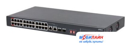 неуправляемый, стоечный, матрица 52 Гбит/с, 38.69 Mpps, 24xGbit, 2xGbit/SFP, PoE, бюджет 370 Вт