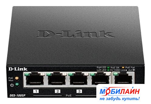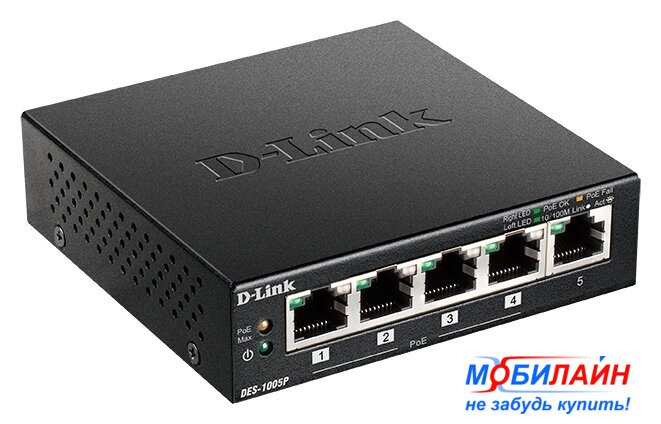 неуправляемый, настольный/настенный, матрица 10 Гбит/с, 7.4 Mpps, 5xGbit, PoE, бюджет 60 Вт