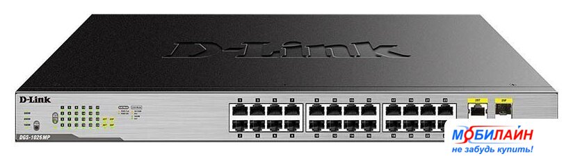 неуправляемый, настольный/стоечный, матрица 8.8 Гбит/с, 6.55 Mpps, 24x100Mbit, 2xGbit/SFP, PoE, бюджет 375 Вт