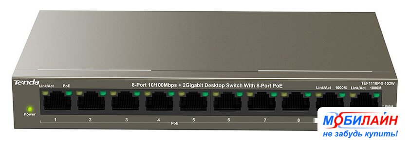 неуправляемый, настольный, матрица 20 Гбит/с, green, 10xGbit, PoE