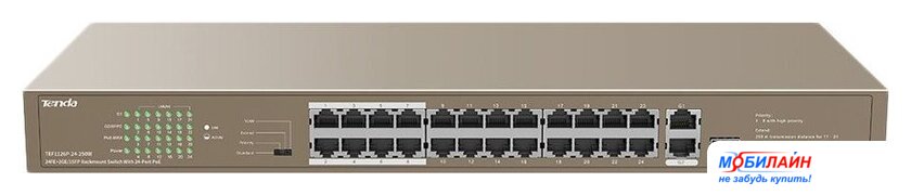неуправляемый, настольный, матрица 53 Гбит/с, 24xGbit, 2xSFP, PoE, бюджет 360 Вт