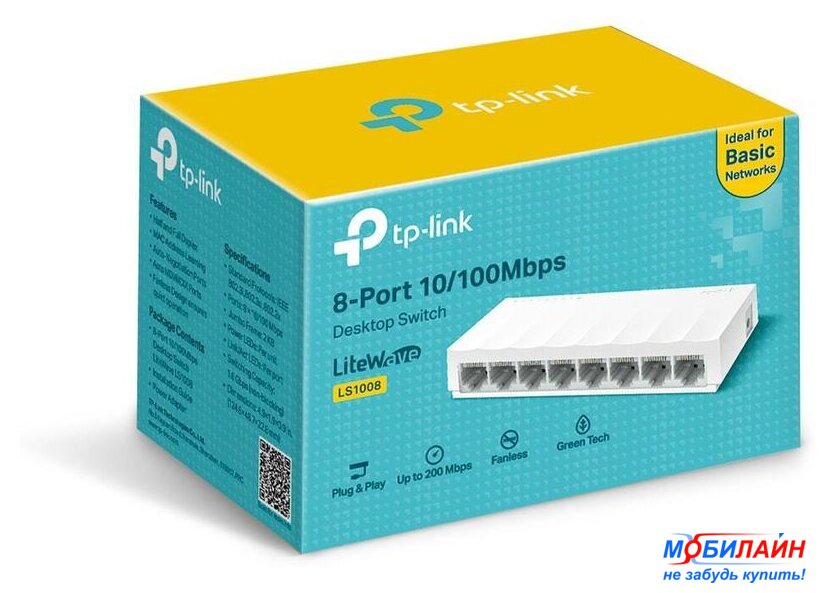 неуправляемый, настольный, матрица 1 Гбит/с, green, 5x100Mbit