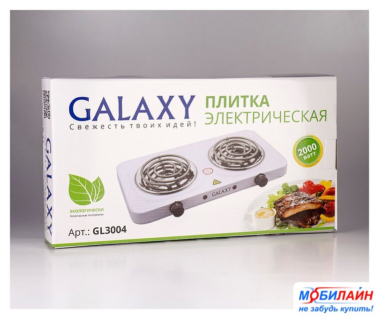 электрическая плита, 2 конфорки, 2000 Вт, 46×24×7 см