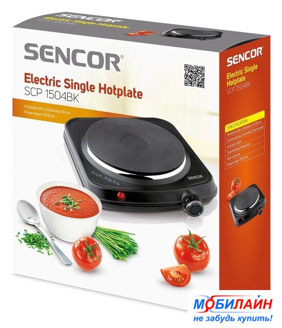 электрическая плита, 1 конфорка, 1500 Вт, 24.7×28.3×8.1 см