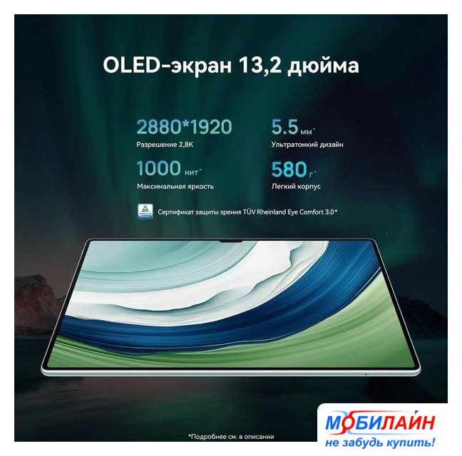 12.4" AMOLED, 120 Гц (2800x1752), Android, MediaTek Dimensity 9300+, ОЗУ 12 ГБ, флэш-память 512 ГБ, цвет серебристый