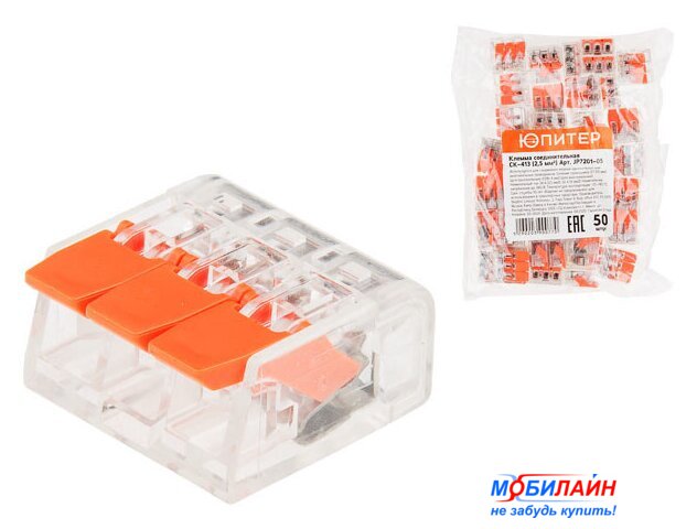 4 точки, сечение одножильных проводников 0.1-2.5 кв.мм, сечение многожильных проводников 0.08-4 кв.мм, 50 шт. в наборе, цвет: белый/оранжевый