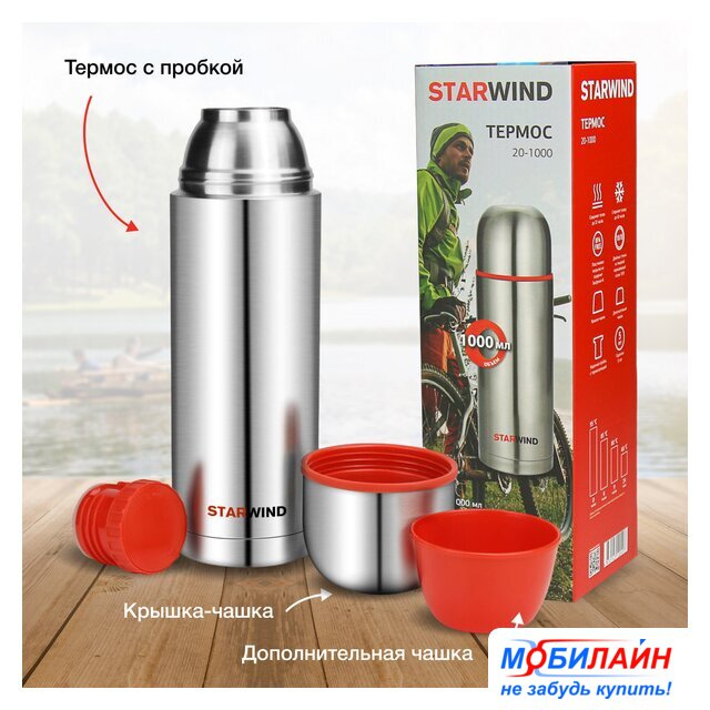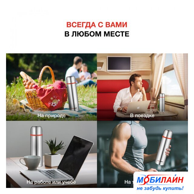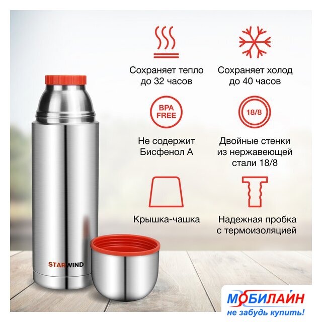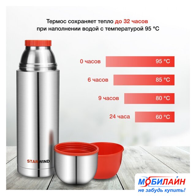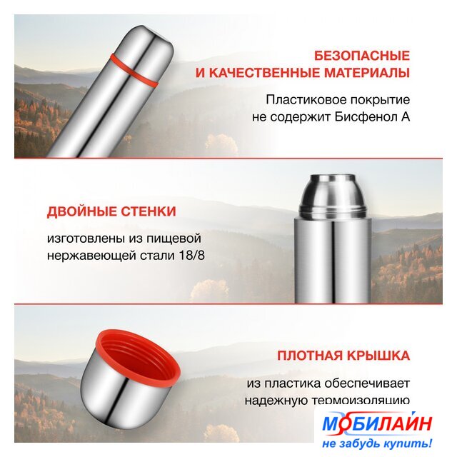 термос, 1.2 л, колба: сталь, корпус: сталь, цвет красный/серебристый