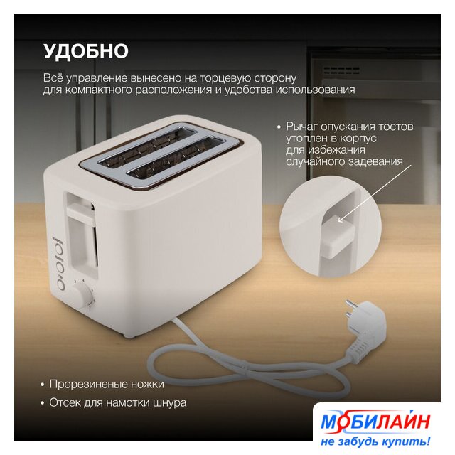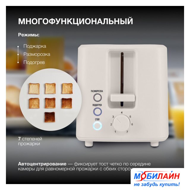 930 Вт, количество тостов: 2, корпус: пластик, 7 степеней обжаривания, цвет белый
