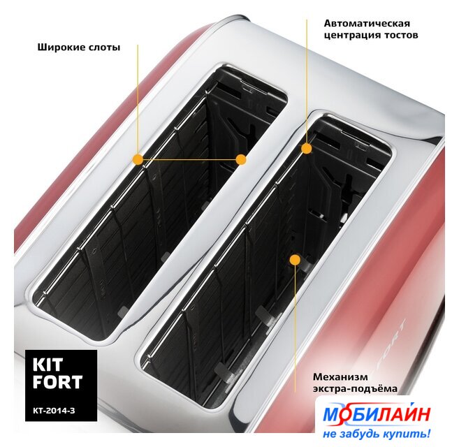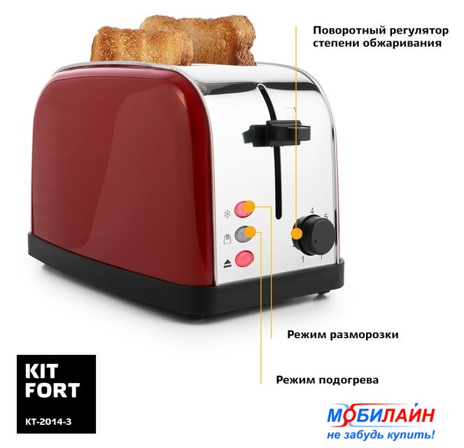 870 Вт, количество тостов: 2, корпус: пластик, 6 степеней обжаривания, цвет красный