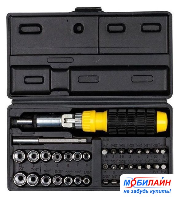 Комплектация | - 7 насадочных головок 1/4 "" привод : 6-7-8-9-10-11-12 мм.- 7 насадочных головок 1/4 "" привод : 1/2""-7/16""-3/8""-11/32""-5/16""-1/4""-3/16"".- 1 трещетка.- 1 адаптер 1/4"" привод.- 1 удлинитель 1/4"" привод ( длина 100 мм ).- 7 насадочных головок (звездочки). - 3 плоские насадочные головки. - 3 крестовых насадочные головки. - 2 квадратные насадочные головки. - 8 шестигранных насадочных головки. |