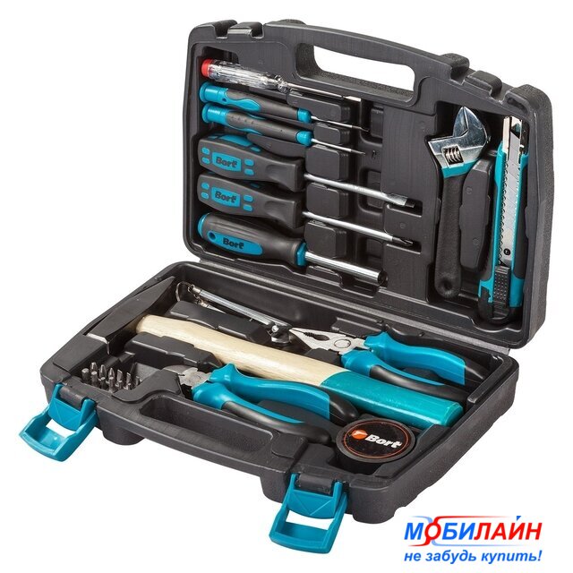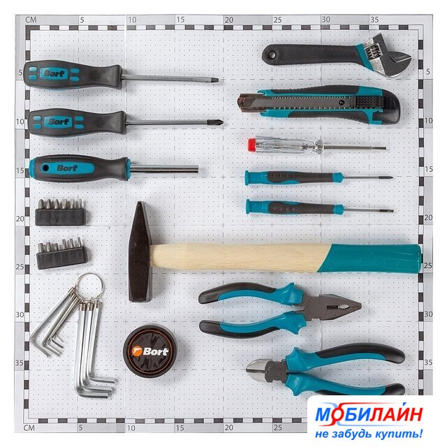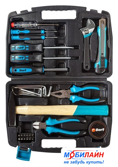Комплектация | - Отвертка (4 шт)- Тестер (1 шт)- Держатель для бит (1 шт)- Ключ разводной (1 шт)- Кусачки (1 шт)- Плоскогубцы (1 шт)- Ключ имбусовый (8 шт)- Молоток (1 шт)- Длинногубцы 160мм (1 шт)- Биты (12 шт)- Изолента (1 шт) |