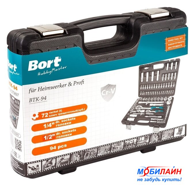 | Комплектация | Биты 25mm 16шт (3, 4, 5, 6, 7, PH0, PH1, PH2, PH3, PZ0, PZ1, PZ2, PZ3, T10, T15, T20, T25, T30, T40, H2, H3, H4, H5, H5.5, H6, AD)Вороток Т-образный 1/4"Вороток-отверткаГоловка торцевая удлиненная 1/2" 4шт (14, 15, 17, 19)Головка торцевая удлиненная 1/4" 8шт (6, 7, 8, 9, 10, 11, 12, 13)Головки 1/2" 18шт (10, 11, 12, 13, 14, 15, 16, 17, 18, 19, 20, 21, 22, 23, 24, 27, 30, 32)Головки 1/4" 13шт (4, 4.5, 5, 5.5, 6, 7, 8, 9, 10, 11, 12, 13, 14)Головки торцевые 1/4" со вставками-битами 17шт (4, 5.5, 7, PH1, PH2, PZ1, PZ2, T8, T10, T15, T20, T25, T30, H3, H4, H5, H6)Головки торцевые свечные 1/2" 2шт (16, 21)Держатель для битКлюч трещеточный 1/2"Ключ трещеточный 1/4"Ключ шестигранный 3шт ( 1.5; 2; 2.5)Переходник для битУдлинитель 1/2" 125ммУдлинитель 1/2" 250 ммУдлинитель 1/4" 100 ммУдлинитель 1/4" 50 ммУдлинитель гибкий 1/4"Шарнир карданный 1/2"Шарнир карданный 1/4" |