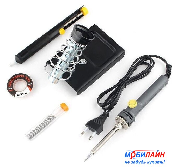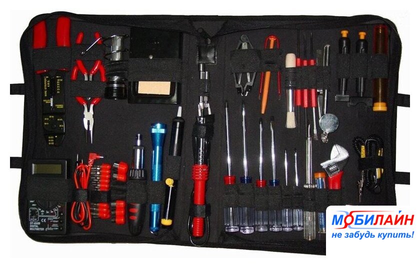 Комплектация | - Антистатический браслет;- Пинцет на разжим, длина 115 мм;- Провод для удаления припоя;- Разводной ключ, длина 155 мм, раздвигается до 19 мм;- Припой в пластиковом футляре;- Пробник для тестирования напряжения 110-220 В, длина 140 мм;- Отвертка плоская: намагниченное жало, длина без ручки - 150 мм, диаметр жала - 5 мм;- Отвертка плоская: намагниченное жало, длина без ручки - 100 мм, диаметр жала - 3 мм;- Отвертка плоская: намагниченное жало, длина без ручки - 75 мм, диаметр жала - 2.4 мм;- Отвертка крестовая: намагниченное жало, длина без ручки - 150 мм, диаметр жала - 5 мм;- Отвертка крестовая: намагниченное жало, длина без ручки - 100 мм, диаметр жала - 3 мм;- Отвертка крестовая: намагниченное жало, длина без ручки - 75 мм, диаметр жала - 2.4 мм;- Футляр для мелких деталей, длина 135мм, диаметр 21 мм;- Приспособление для вставки DIP-микросхем (инсертер): длина 104 мм. Размер рабочей поверхности 34 мм*15 мм;- Приспособление для вставки DIP-микросхем (инсертер): длина 100 мм. Размер рабочей поверхности 20 мм*7 мм;- Зеркало на ручке: длина ручки 185 мм, диаметр зеркала 32 мм;- Кисточка с металлической щетиной и стамеска: общая длина 180 мм;- Прямое шило и держатель: общая длина 180 мм;- Изогнутое шило и стамеска: общая длина: общая длина 180 мм;- Кисточка: длина 160 мм, диаметр 17 мм;- Приспособление для вытаскивания DIP-микросхем (экстрактор): длина 104 мм;- Приспособление для вытаскивания PLCC-микросхем (экстрактор): длина 100 мм, ширина 49 мм;- Пинцет с 3-мя зубцами, длина 118 мм;- Удлинитель для накидных головок, длина 75 мм;- Удлинитель к насадкам, длина 60 мм;- Отсос для припоя: длина 200 мм, диаметр 20 мм;- Фонарик: длина 142 мм;- Реверсивная отвертка;- Подставка под паяльник с держателем;- Инструмент для разделки кабеля;- Пассатижи, длина 133 мм;- Кусачки, длина 112 мм;- Набор насадок: Плоская: 3мм, 5мм, 7мм. Крестовая: 3 мм, 5 мм, 7 мм, Звездочкой: менее 2 мм, 2 мм, 2.4 мм, 2.9 мм. Шестигранник: 1.5, 2.0, 2.5, 3.0, 4.0, 5.0, 6.0 мм. U-тип: 3.5 мм, 4.6 мм, 5 мм, 6.2 мм;- Накидные головки: 5 мм, 6 мм, 7 мм, 8 мм, 9 мм, 10 мм, 11 мм;- Переходник на накидные головки. |