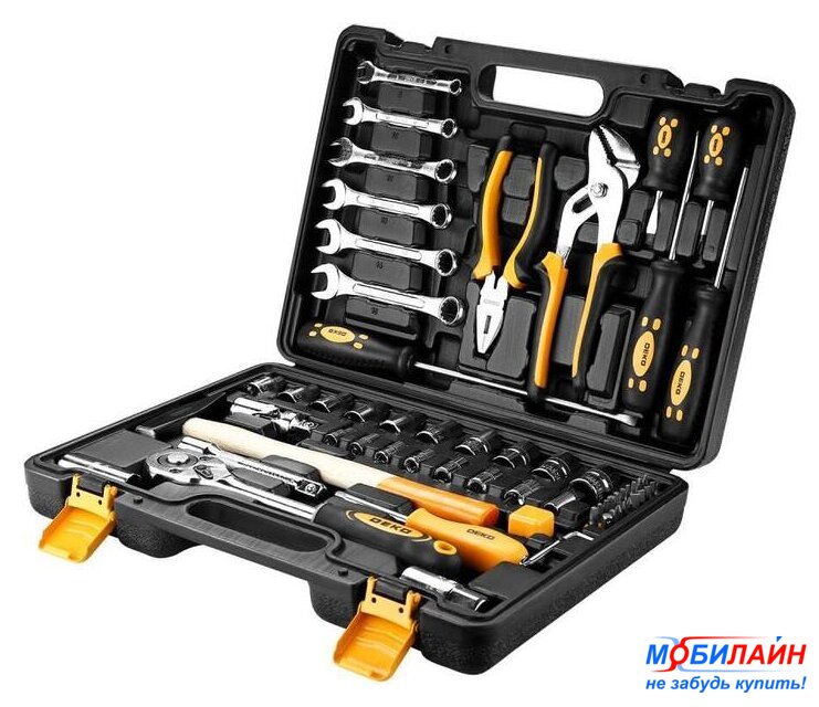 | Комплектация | - 6 шт. комбинированный ключ,- 1 шт. плоскогубцы,- 1 шт. переставной ключ,- 5 шт. отвертка,- 1 шт.1/4 "соединитель,- 7 шт. 1/4 " головка,- 10 шт. 1/2 " головка,1 шт. универсальный шарнир,- 1 шт. удлиннитель,- 2 шт. торцевая головка,- 3 шт. шестигранный ключ,- 1 шт. трещотка,- 1 шт. держатель головок,- 1 шт. молоток,- 1 шт. резиновая насадка на молото,- Кейс. |