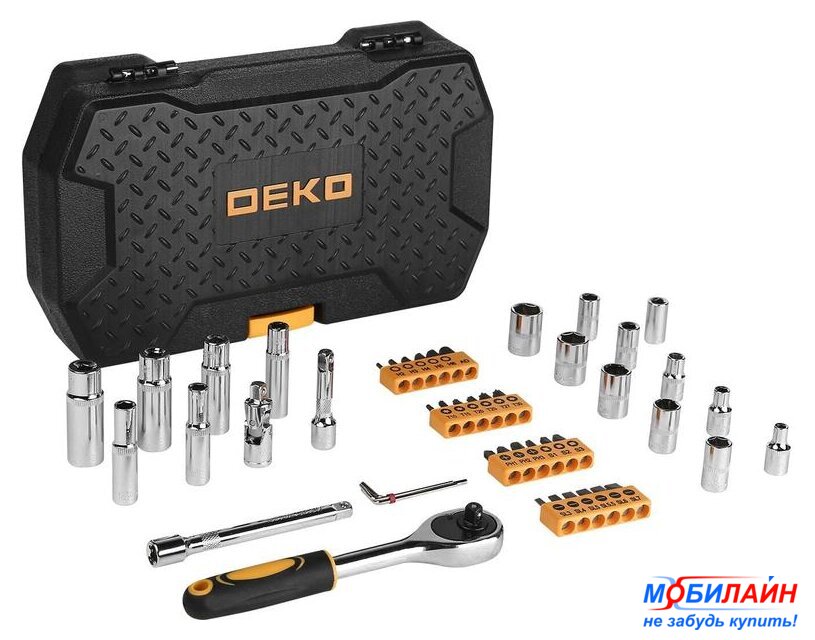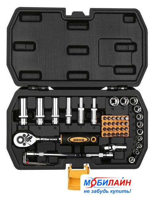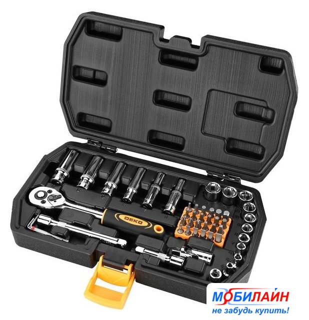 | Комплектация | - 23 шт. биты SL3,4,5,5.5,6,7, PH1,2,3,S1,2,3 T10,15,20,25,27,30, H2,3,4,5,6;- 1 шт. адаптер;- 3 шт. шестигранный ключ 1.5,2,2.5 мм;- 6 шт. глубокие головки 1/4": 6,7,8,10,12,13 мм;- 10 шт. головки 1/4" 4,5,6,7,8,9,10,11,12,13 мм;- 1 шт. универсальный шарнир 1/4";- 1 шт. соединитель 1/4";- 2 шт. удлинитель 1/4 ": 2", 4 ";- 1 шт. трещотка 1/4";- 1 шт. кейс. |