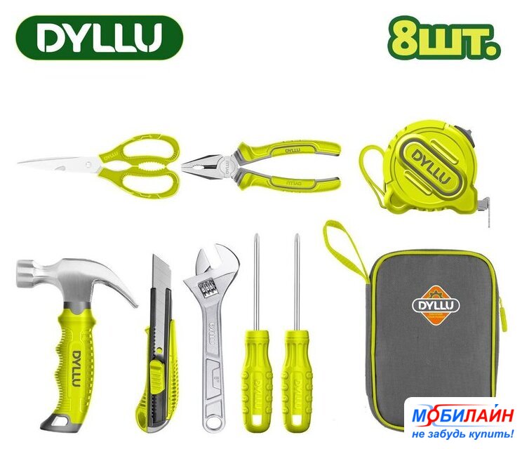 | Комплектация | Рулетка стальная 3 м × 16 мм – 1 шт.Отвертка крестовая PH1 × 100 мм – 1 шт.Отвертка шлицевая SL5.5 × 100 мм – 1 шт.Плоскогубцы комбинированные 150 мм – 1 шт.Ножницы 200 мм – 1 шт.Разводной ключ 150 мм – 1 шт.Нож со сменными лезвиями 18 мм – 1 шт.Молоток слесарный с гвоздодёром 225 г – 1 шт.Сумка из ткани – 1 шт. |