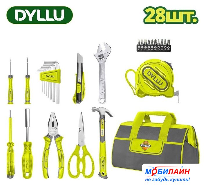 | Комплектация | Рулетка стальная 3 м × 16 мм – 1 шт.Плоскогубцы комбинированные 150 мм – 1 шт.Ножницы 200 мм – 1 шт.Разводной ключ 150 мм – 1 шт.Нож со сменными лезвиями 18 мм – 1 шт.Молоток слесарный с гвоздодёром 225 г – 1 шт.Индикаторная отвертка 140 мм – 1 шт.Магнитный держатель для бит 1/4″ × 100 мм – 1 шт.Биты SL4, SL5, SL6, PH1, PH2, PH3, T10, T15, T20, T30 – 10 шт.Отвертка прецизионная шлицевая SL2.0 × 50 мм – 1 шт.Отвертка прецизионная крестовая PH000 × 50 мм – 1 шт.Шестигранные ключи 1.5 / 2 / 2.5 / 3 / 4 / 5 / 6 мм – 7 шт.Сумка для инструментов 330 мм – 1 шт.Упаковка: цветная коробка – 1 шт. |
